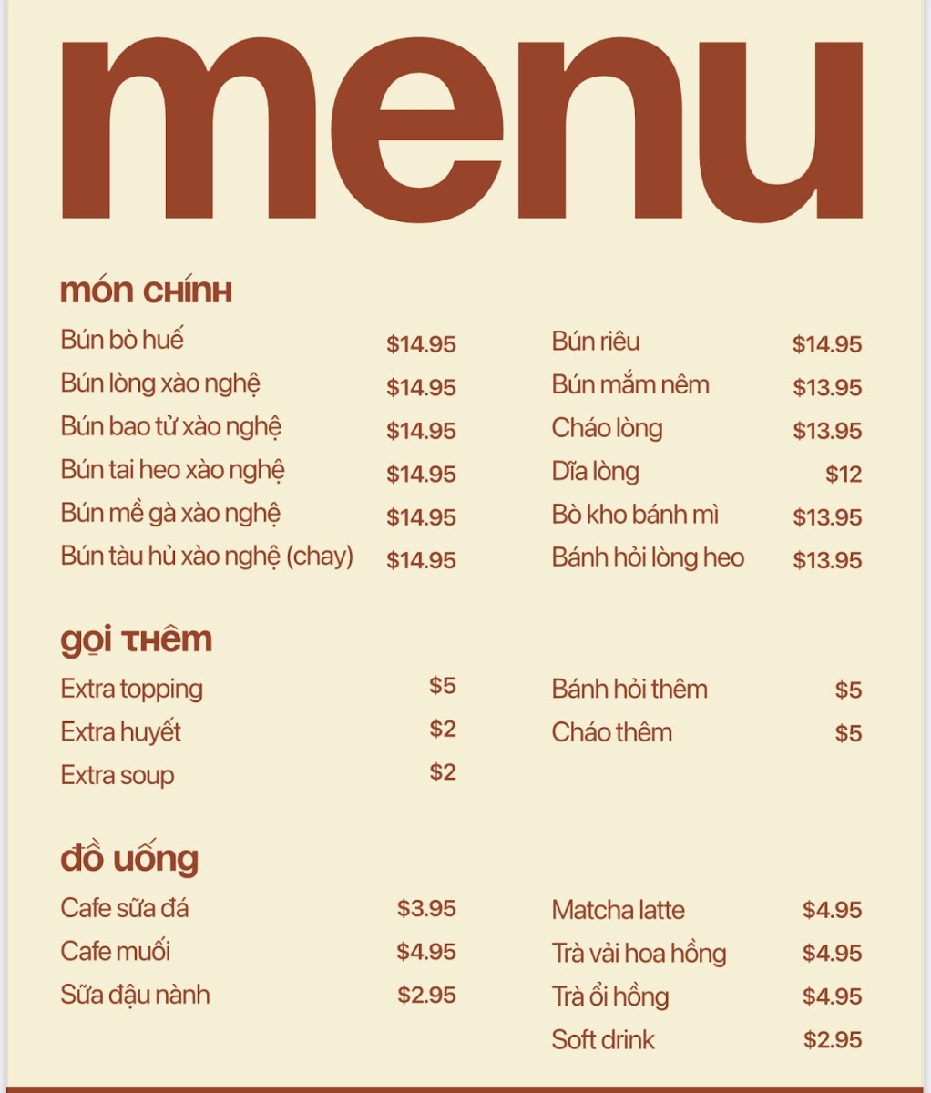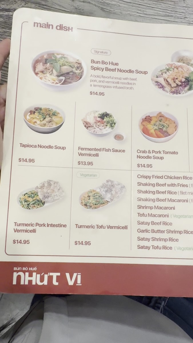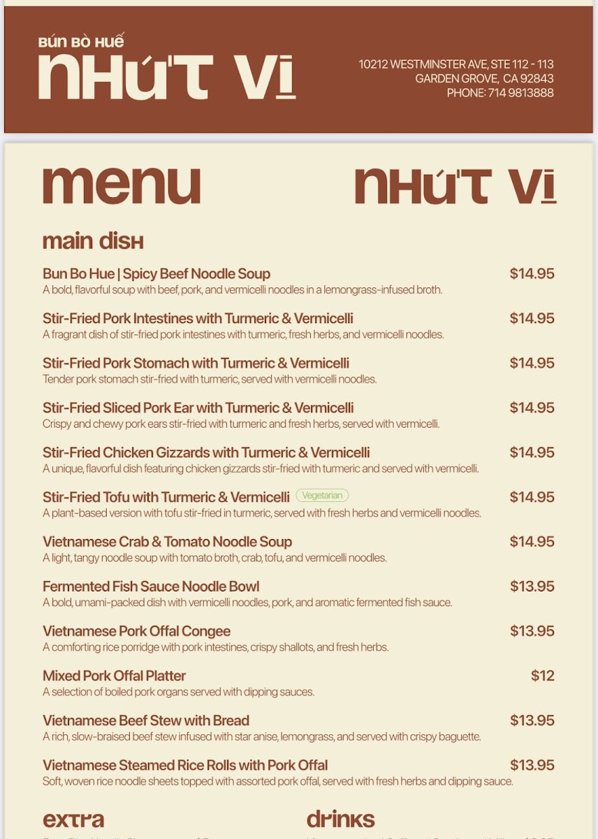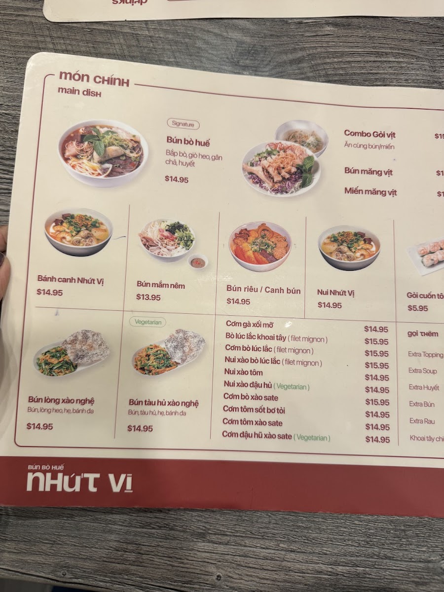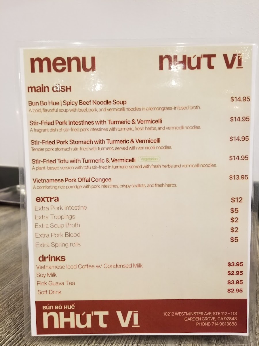 Bún bò huế NHỨT VỊ Menu